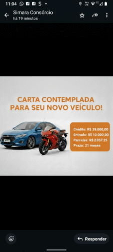 Carta de crédito contemplada carro ou moto, 39 mil mais o ágil de 10 mil mais 21 parcela 2.040.