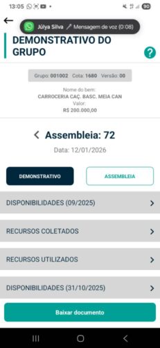 Carta de credito de 200 mil de pesados grupo em andamento cota ativa 6 meses ja paga, grupo bom com mais de 16 chances de contemplação!!!.