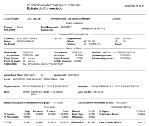 Vendo cota de consórcio Rodobens – Automóvel.
